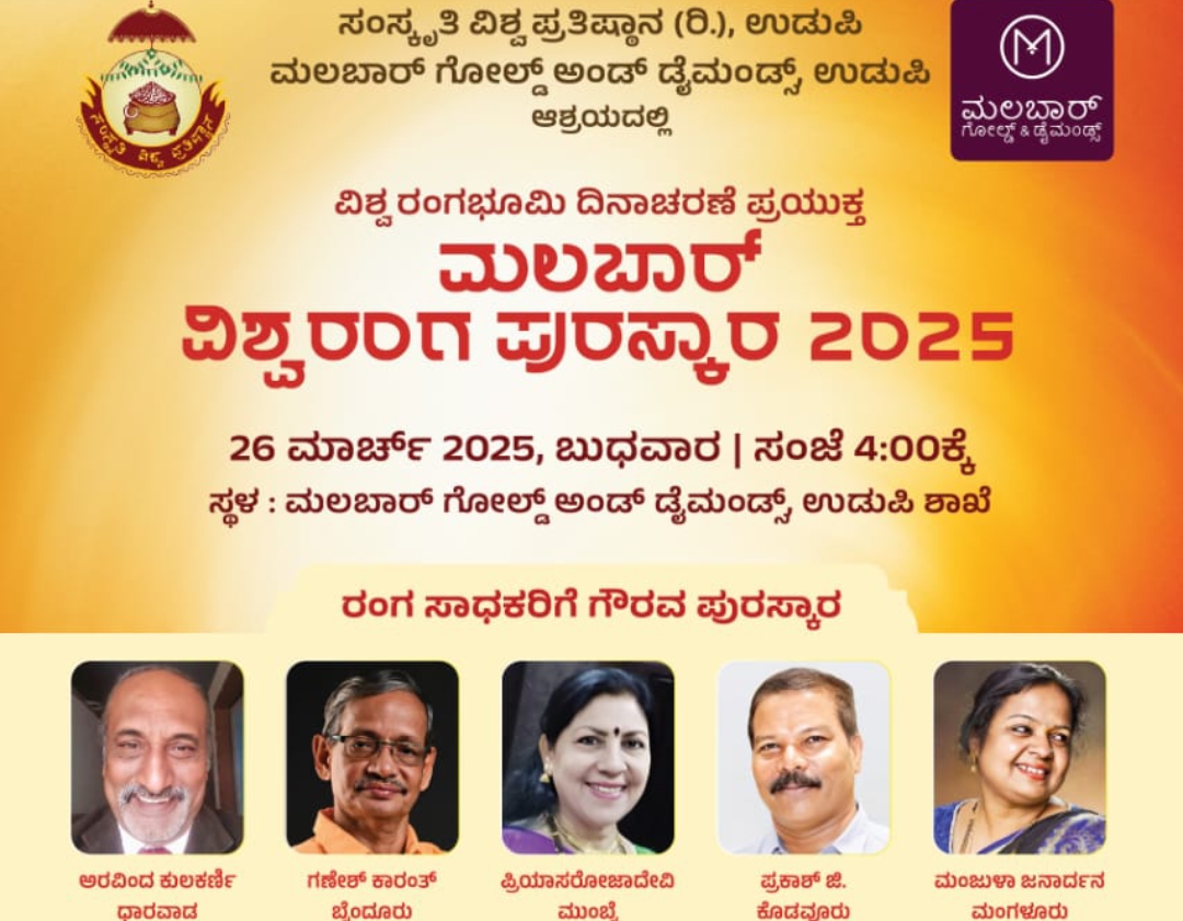 ಸಂಸ್ಕೃತಿ ವಿಶ್ವ ಪ್ರತಿಷ್ಠಾನ (ರಿ) ಉಡುಪಿ ಬೊಕ್ಕ ಮಲಬಾರ್ ಗೋಲ್ಡ್ ಆಂಡ್ ಡೈಮಂಡ್ಸ್ ಉಡುಪಿ ವತಿಡ್ದ್ ಪ್ರದಾನ ಮಲ್ಪುನ ಆಜನೇ ವರ್ಷದ ‘ಮಲಬಾರ್ ವಿಶ್ವರಂಗ ಪುರಸ್ಕಾರ 2025ಗ್ ‘ ರಾಜ್ಯ ಬೊಕ್ಕ ಪರರಾಜ್ಯದ ಐನ್ ಹಿರಿಯ ರಂಗಕರ್ಮಿಲು ಆಯ್ಕೆಯಾದಿತ್ತುದ್,